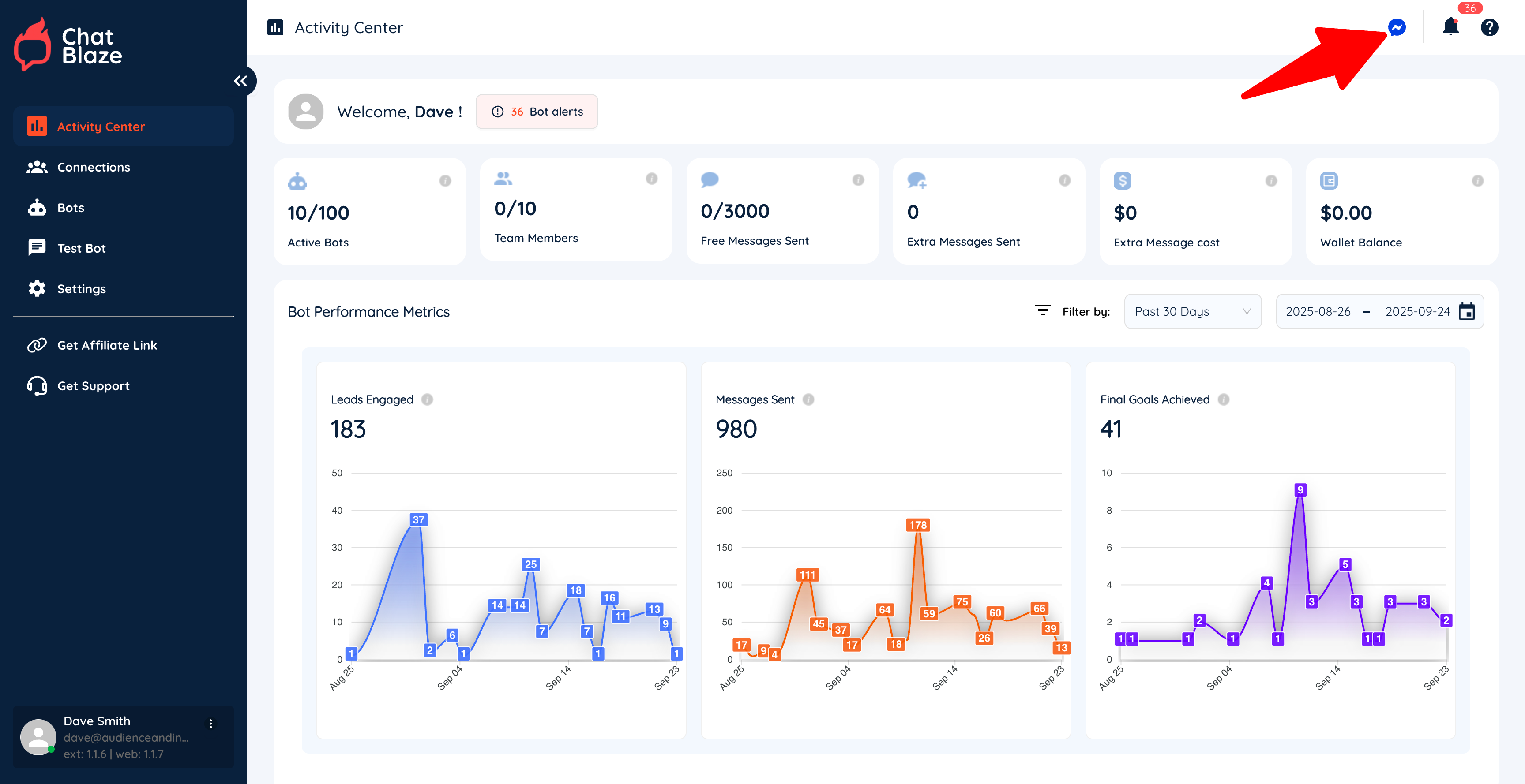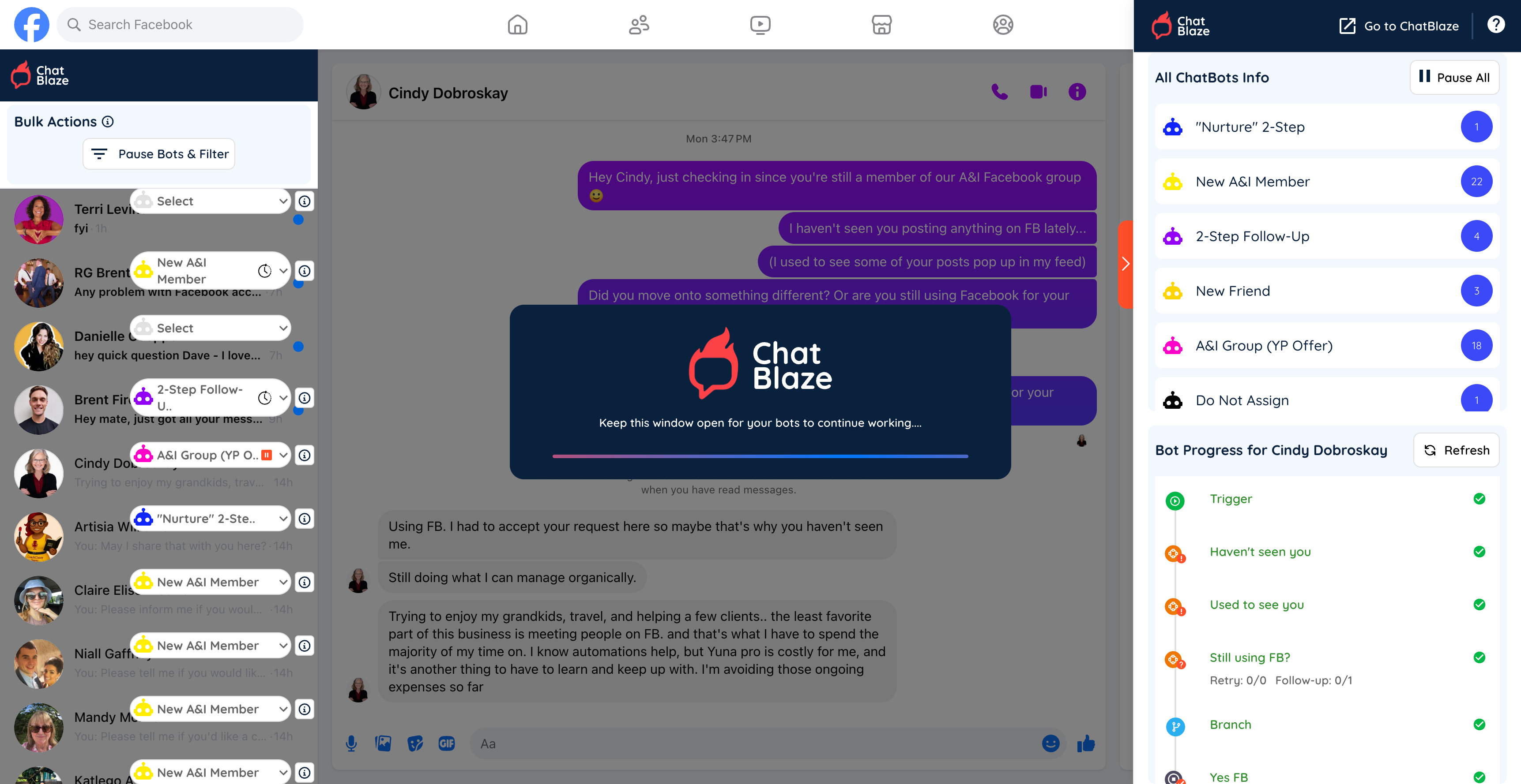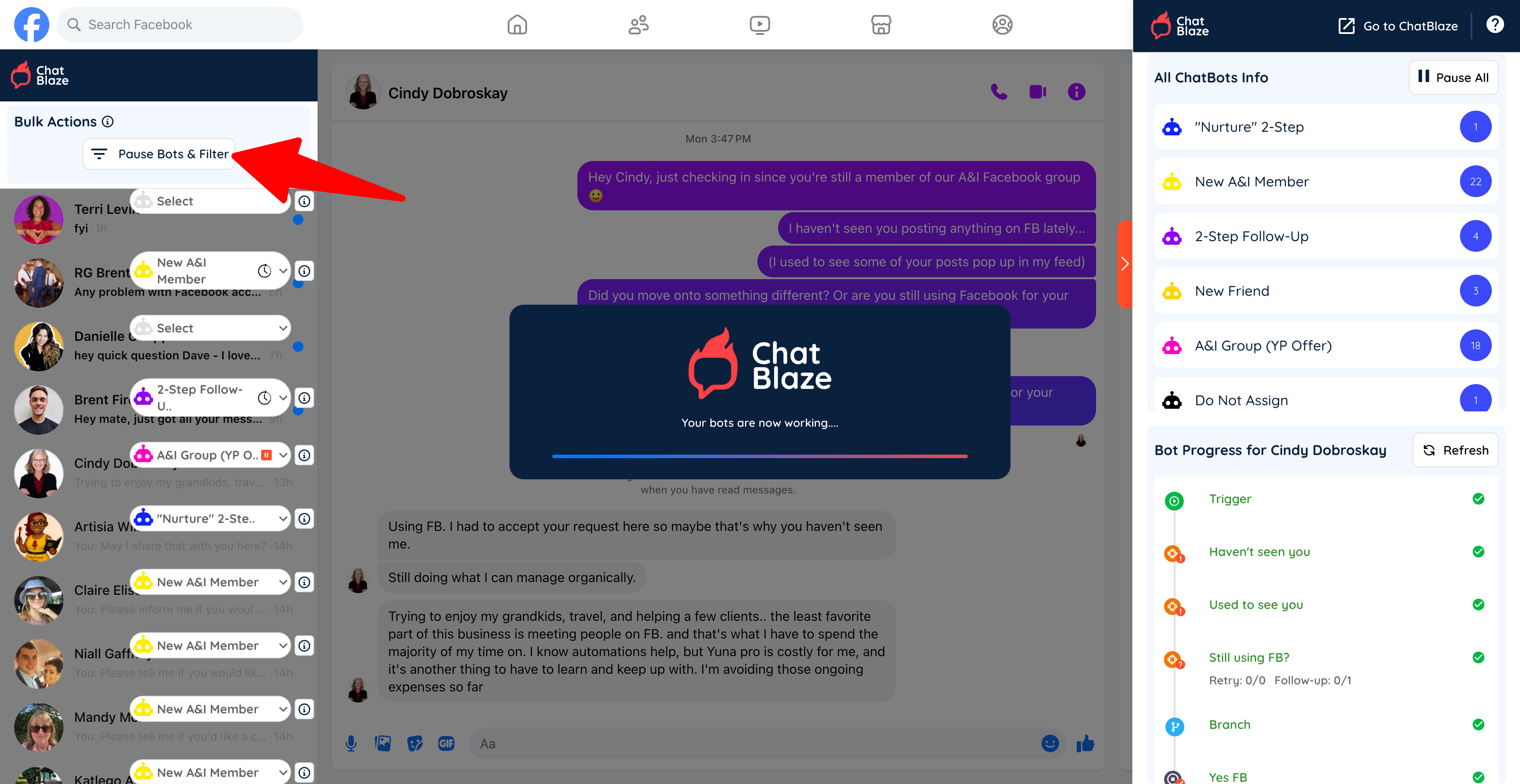 8) Once resumed, your bots will begin chatting with the leads they are assigned to.