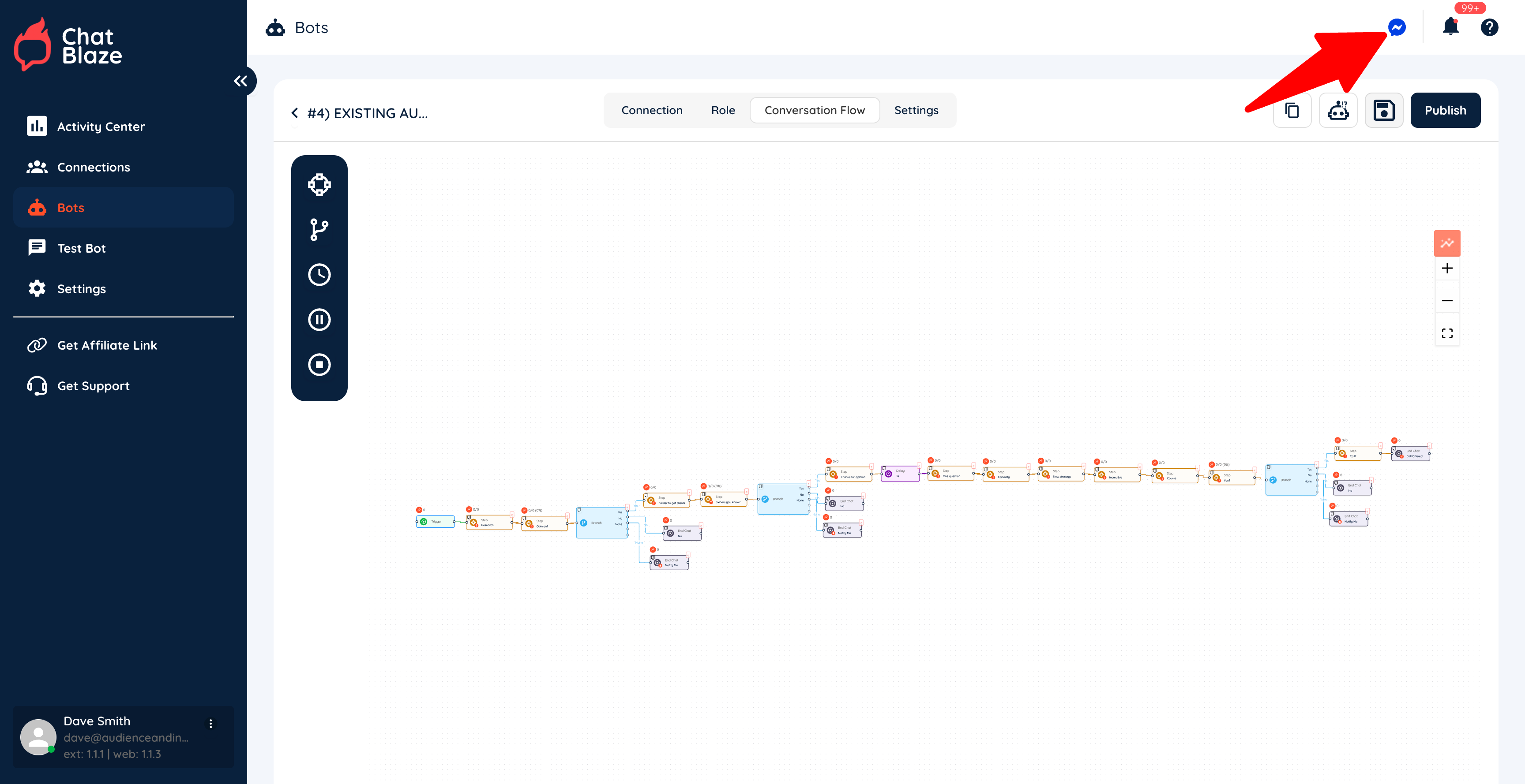 7) Click the "Messenger" icon to launch ChatBlaze in Messenger so that your bots can go to work for you.